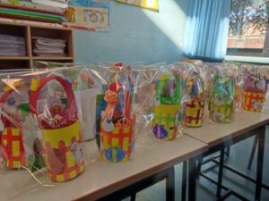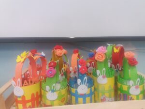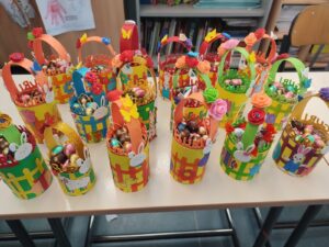 I bambini della 2 B, del plesso Masih, hanno personalizzato semplici barattoli di latta rivestendoli con cartoncino e decorandoli con soggetti pasquali e primaverili coloratissimi. I barattoli si sono trasformati in pratici cestini. Buona e dolce Pasqua a tutti!!!