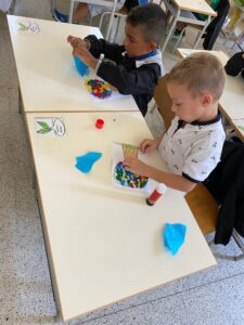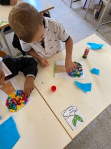 Dopo aver colorato il tronco, i bambini hanno formato delle palline di carta velina che hanno incollato sulla chioma.