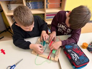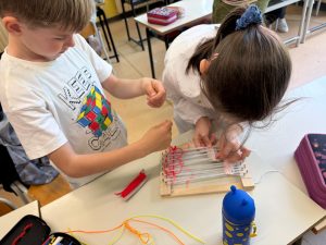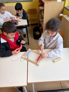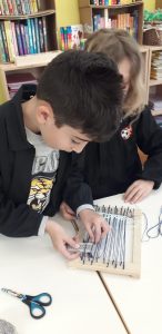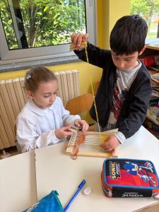 Oggi i bimbi delle classi 2B e 2C del plesso Anzani, hanno contribuito con il loro lavoro a realizzare un telaio, che sarà unito a quello di tanti altri bimbi di classi diverse, per rappresentare la ciminiera della nuova biblioteca.